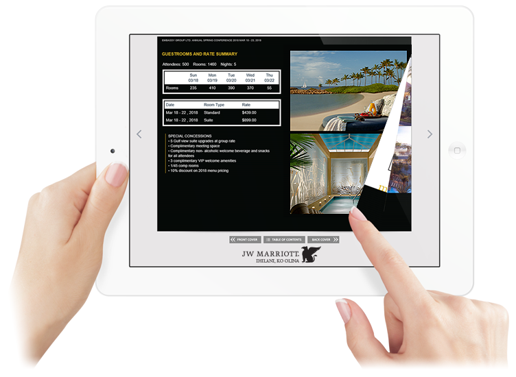 Create professional sales proposal flipbooks that are easily customized to address the specific requirements of any group sales lead.